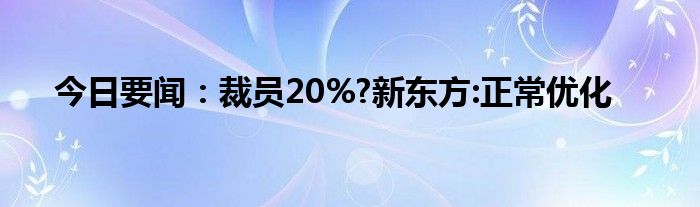 #"裁员"20%?新东方:正常优化#4月14日,据媒体报道,新东方在线在过去一个月进行集中裁员,涉及中小学大班课业务的主讲教师、教学辅导、运营等多个岗位。各部门裁员指标不同,约20%的中学部主讲老师已离职。和2020 年暑期相比,大班课业务主讲老师、辅导老师人数只剩下一半。4月15日,新东方在线回应称:“不存在集中裁员的动作或计划,更无所谓‘各部门裁员指标’。”