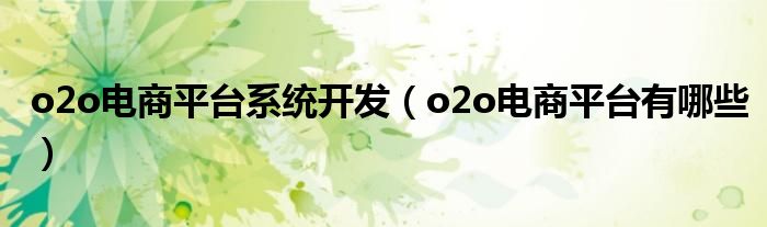 o2o电商平台系统开发(o2o电商平台有哪些)