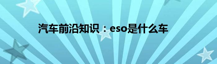 汽车前沿知识:eso是什么车