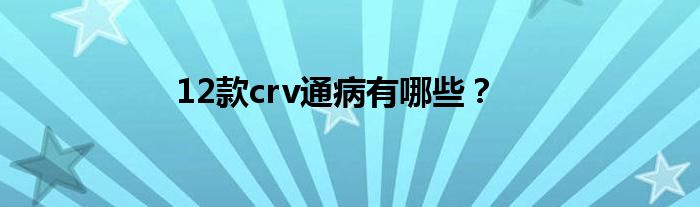 12款crv通病:1、起步刹车异响。2、车窗升降声音响行驶中与胶条抖动用手可向提段距离感觉松动。3、P档开空调刹车附有哒哒声。4、油耗高。5、40-60迈车身抖动厉害。本田CR-V是东风本田汽车公司生产的一款城市经典SUV车型,2015款CR-V主打运动时尚的设计外观,搭配米其林Latitude系列SUV轮胎,操控性能极佳。最大优点:外观时尚动感,线条流畅,圆润中而不失运动;用料和做工有所提升;配置不错;动力强劲;操控灵活;性价比较高。空间:整体驾乘空间宽敞充裕,头部腿部空间没有明显的紧凑感;车内储物空间丰富实用;座椅包裹比较严实,舒适性比较不错,后排座椅小幅度可调,长途乘坐更实用。