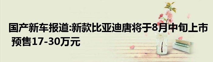 国产新车报道:新款比亚迪唐将于8月中旬上市 预售17-30万元