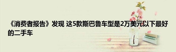 《消费者报告》发现 这5款斯巴鲁车型是2万美元以下最好的二手车