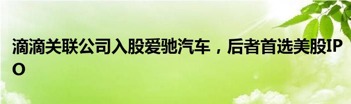 滴滴关联公司入股爱驰汽车,后者首选美股IPO