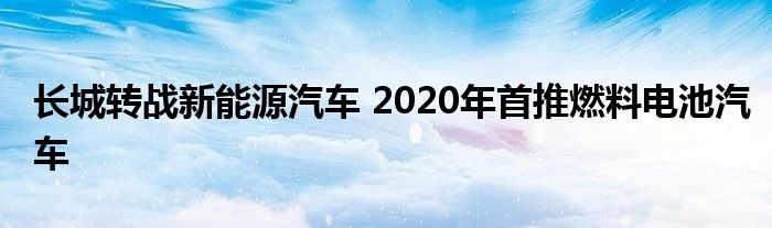 长城转战新能源汽车 2020年首推燃料电池汽车