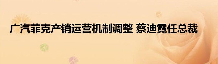 广汽菲克产销运营机制调整 蔡迪霓任总裁