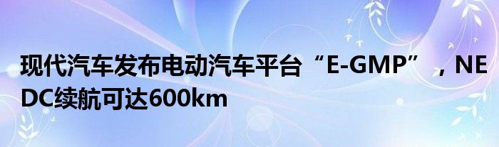 现代汽车发布电动汽车平台“E-GMP”,NEDC续航可达600km
