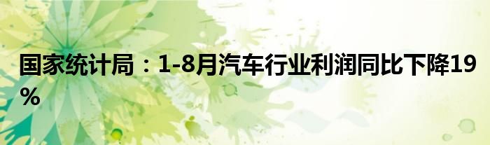 国家统计局发布数据显示,1-8月份,汽车行业利润同比下降19.0%,降幅比1-7月份分别收窄4.2个百分点。相比于工业企业平均利润下滑1.7%的情况,汽车行业的利润下滑幅度显然远高于工业制造行业的平均水平。