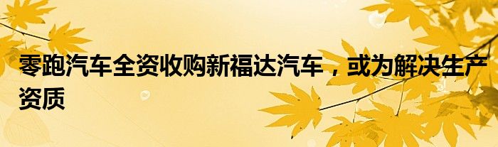 零跑汽车全资收购新福达汽车,或为解决生产资质