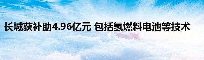 长城获补助4.96亿元 包括氢燃料电池等技术