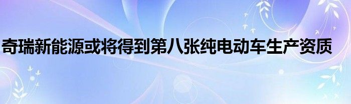 奇瑞新能源或将得到第八张纯电动车生产资质