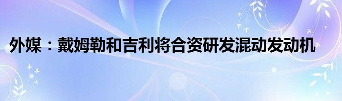 外媒:戴姆勒和吉利将合资研发混动发动机