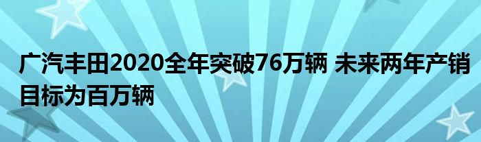 广汽丰田2020全年突破76万辆 未来两年产销目标为百万辆
