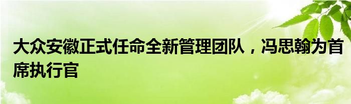 大众安徽正式任命全新管理团队,冯思翰为首席执行官