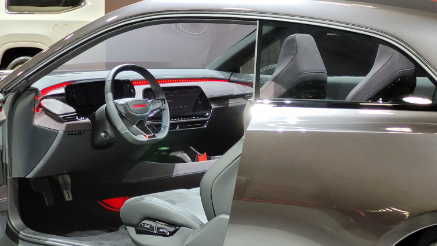 但由于道奇选择在玻璃后面的底座上展示这款未来派电动肌肉车,让人群远离,我们能够更清楚地看到轿跑车的车身,以及这两扇门的另一侧是什么。