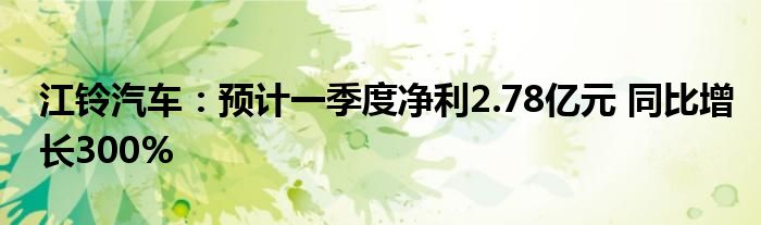 江铃汽车:预计一季度净利2.78亿元 同比增长300%