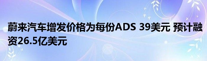 蔚来汽车增发价格为每份ADS 39美元 预计融资26.5亿美元
