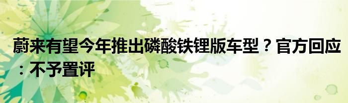 蔚来有望今年推出磷酸铁锂版车型?官方回应:不予置评