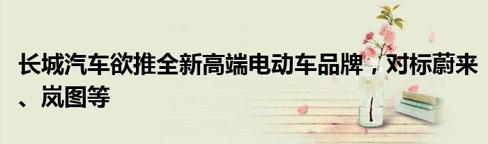 长城汽车欲推全新高端电动车品牌,对标蔚来、岚图等