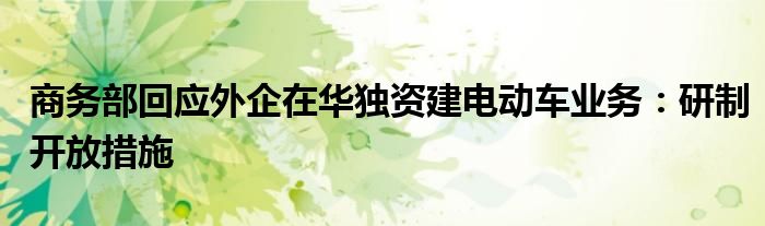 商务部回应外企在华独资建电动车业务:研制开放措施