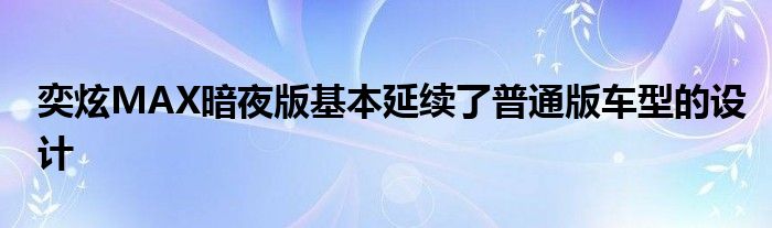 奕炫MAX暗夜版基本延续了普通版车型的设计
