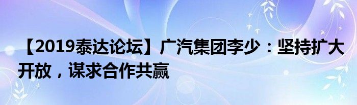 【2019泰达论坛】广汽集团李少:坚持扩大开放,谋求合作共赢