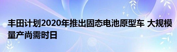 丰田计划2020年推出固态电池原型车 大规模量产尚需时日