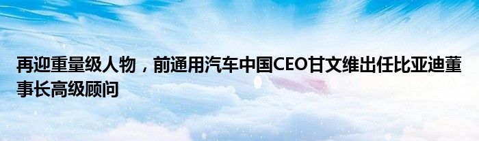 再迎重量级人物,前通用汽车中国CEO甘文维出任比亚迪董事长高级顾问