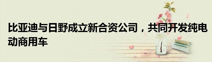 比亚迪与日野成立新合资公司,共同开发纯电动商用车