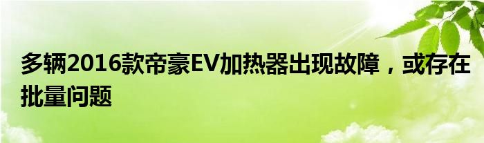 多辆2016款帝豪EV加热器出现故障,或存在批量问题