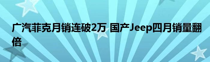 广汽菲克月销连破2万 国产Jeep四月销量翻倍