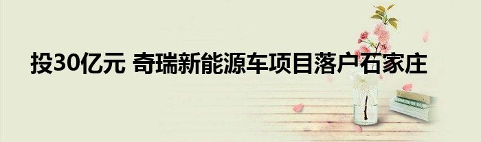 投30亿元 奇瑞新能源车项目落户石家庄