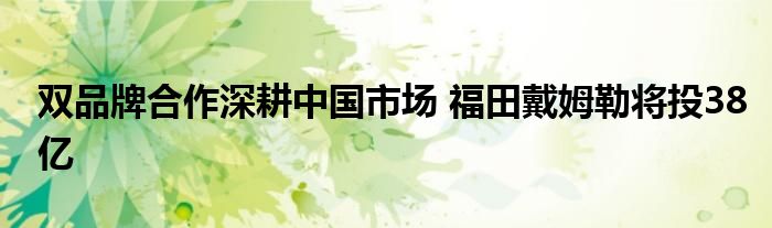 双品牌合作深耕中国市场 福田戴姆勒将投38亿