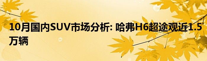 10月国内SUV市场分析: 哈弗H6超途观近1.5万辆