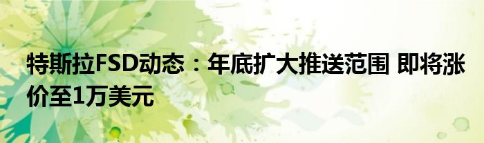 特斯拉FSD动态:年底扩大推送范围 即将涨价至1万美元