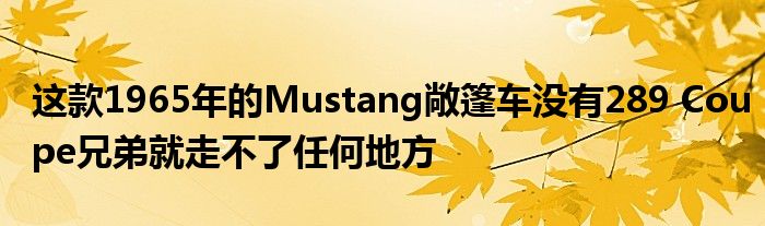 这款1965年的Mustang敞篷车没有289 Coupe兄弟就走不了任何地方