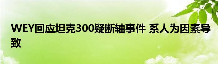WEY回应坦克300疑断轴事件 系人为因素导致