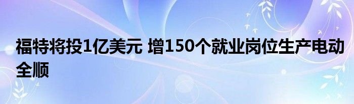 福特将投1亿美元 增150个就业岗位生产电动全顺
