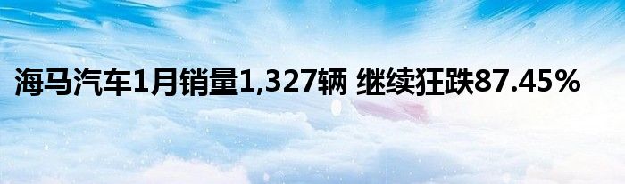 海马汽车1月销量1,327辆 继续狂跌87.45%