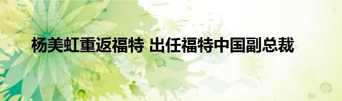 “杨美虹女士回归福特汽车大家庭,将进一步加强福特中国管理团队实力,也是福特中国人才计划的重要体现。”福特中国总裁兼首席执行官陈安宁表示:“杨美虹将带领团队一起,全面围绕消费者的需求,对传播的内容、形式和渠道进行创新,提升跨团队的业务能力,从而有序推动福特中国2.0计划。”
