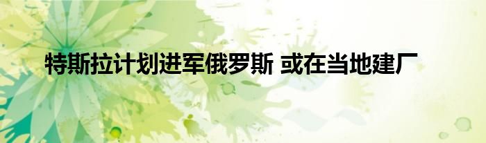 特斯拉计划进军俄罗斯 或在当地建厂