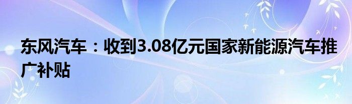 东风汽车:收到3.08亿元国家新能源汽车推广补贴