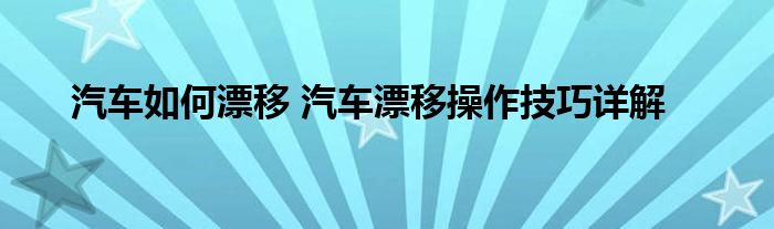 在日常生活中汽车已经成为了主要的出行工具,我们在用车的过程当中肯定也就会遇到各种各样的问题。看到不少车友提到关于汽车如何漂移 汽车漂移操作技巧详解此方面的问题,对此小编去整理了一些关于汽车如何漂移 汽车漂移操作技巧详解此方面的讯息,在这里分享给广大的车友朋友们。