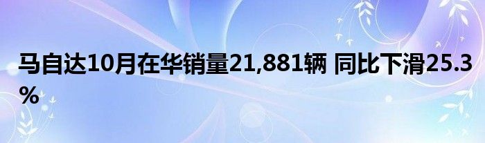 马自达10月在华销量21,881辆 同比下滑25.3%