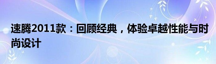 速腾2011款:回顾经典,体验卓越性能与时尚设计