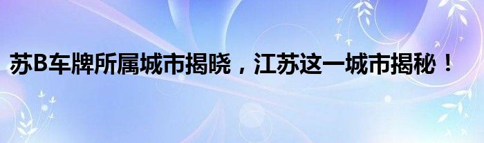 苏B车牌所属城市揭晓,江苏这一城市揭秘!