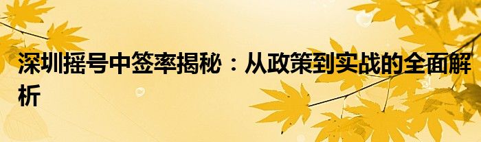 本文将围绕深圳摇号中签率这一主题展开深入探讨,从政策背景、摇号机制、中签率计算方式以及如何提高中签率等方面进行全面解析,帮助读者更好地了解深圳摇号中签率的实际情况。