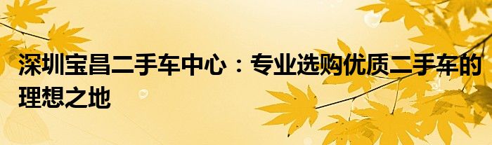 深圳宝昌二手车中心:专业选购优质二手车的理想之地