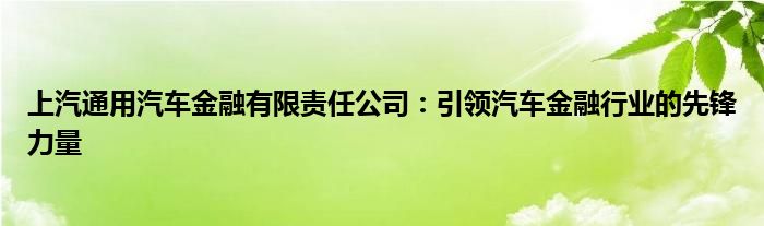 上汽通用汽车金融有限责任公司:引领汽车金融行业的先锋力量