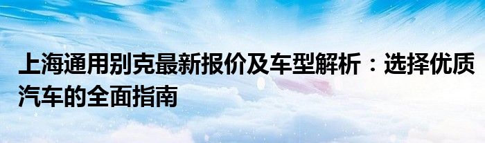 上海通用别克最新报价及车型解析:选择优质汽车的全面指南
