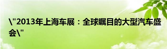 "2013年上海车展:全球瞩目的大型汽车盛会"